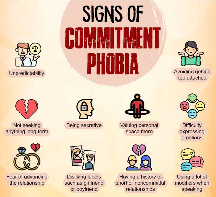 Below are some common [mfn] Steinert, S., & Lipski, J. (2017). Who is Afraid of Commitment? On the Relation of Scientific Evidence and Conceptual Theory. Erkenntnis, 83(3), 477–500. https://doi.org/10.1007/s10670-017-9899-x [/mfn] commitment phobia signs: