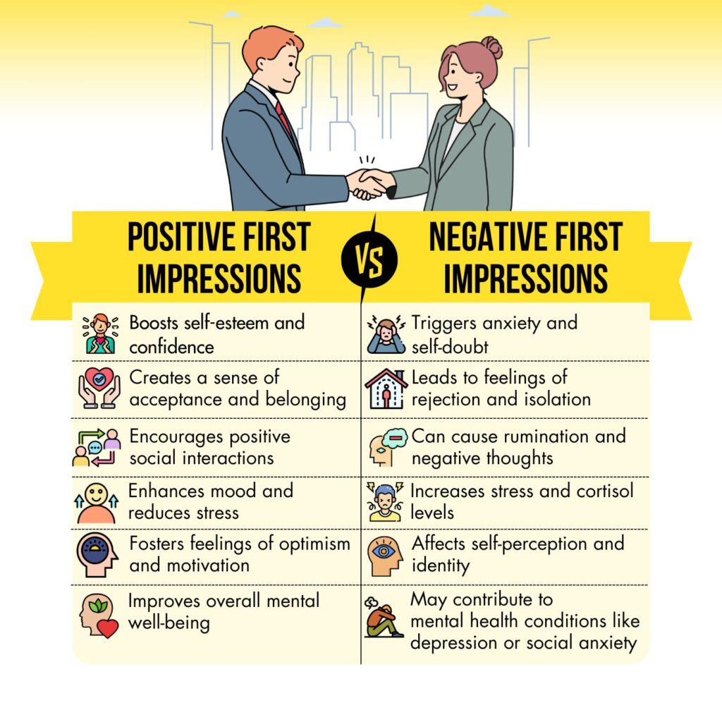 From a mental health standpoint, first impressions can be particularly significant. They can influence our self-esteem and self-image, especially if we feel we are being judged negatively. When we experience repeated negative first impressions, it can contribute to the development of social anxiety, lower self-confidence, and in some cases, even depression.