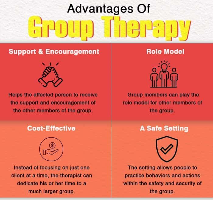 There is no doubt that this type of psychotherapy can be beneficial for most patients and significantly help them to recover. The principal advantages of group therapy are as follows.