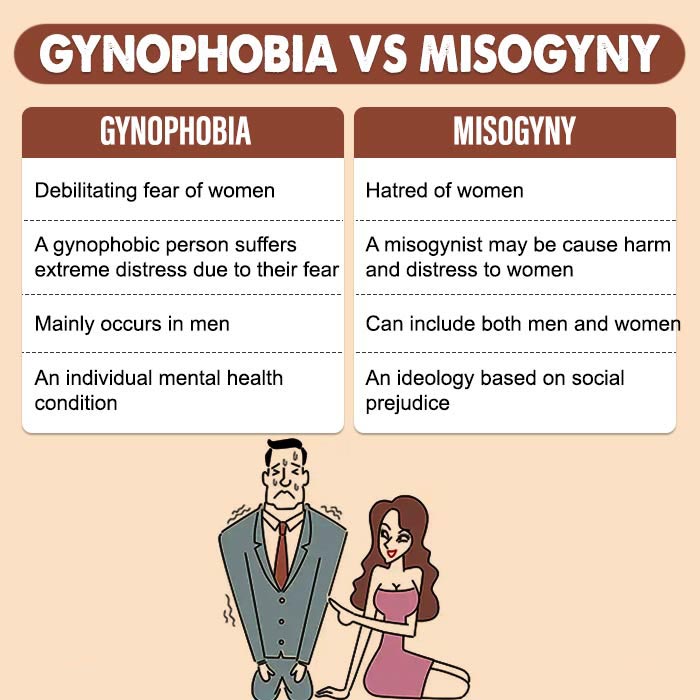 - Gynophobia is an abnormal fear of women that can make an individual feel overwhelmed and also affect their daily life.
