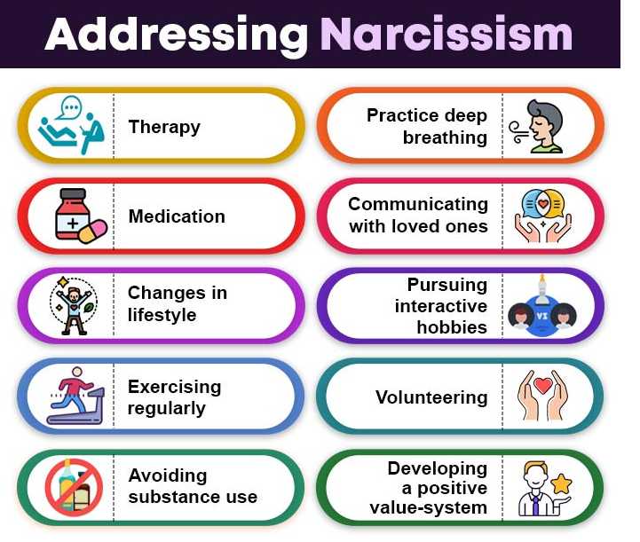 Apart from psychotherapies and medications, experts suggest that lifestyle changes and coping strategies can also help treat clinical narcissism.