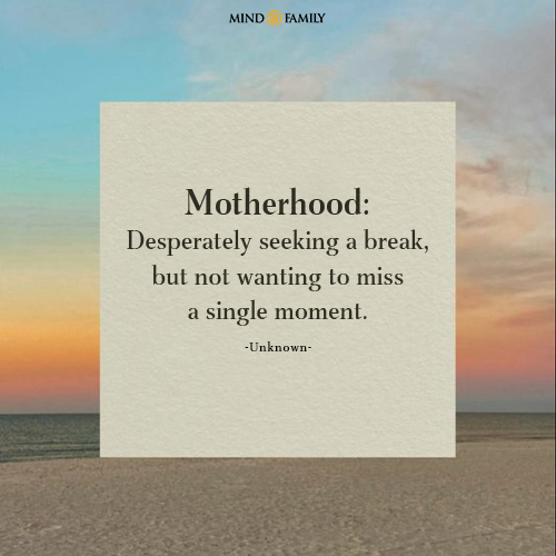 Motherhood: Desperately seeking a break, but not wanting to miss a single moment.
