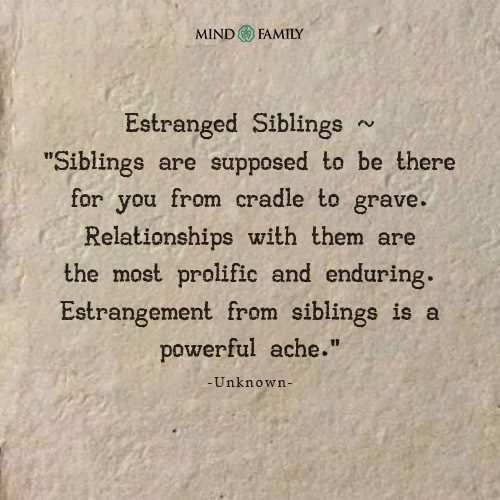 Estranged Siblings “Siblings are supposed to be there for you from cradle to grave. Relationships with them are the most prolific and enduring. Estrangement from siblings is a powerful ache.”